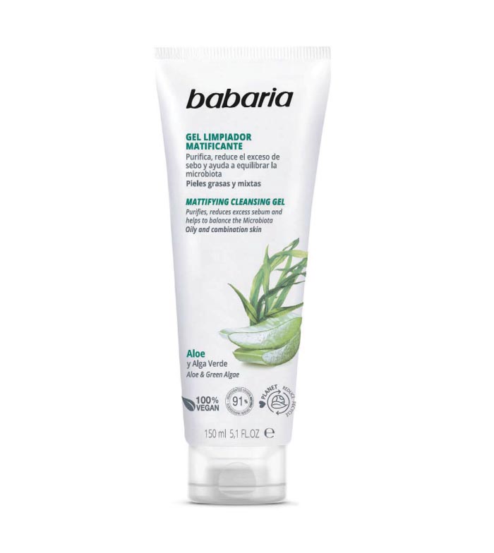 Gel limpiador facial matificante de Babaria que purifica, reduce el exceso de sebo y ayuda a equilibrar la microbiota.