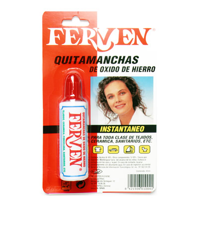 Quitamanchas de óxido de hierro instantáneo para toda clase de tejidos, cerámica, sanitarios, etc.