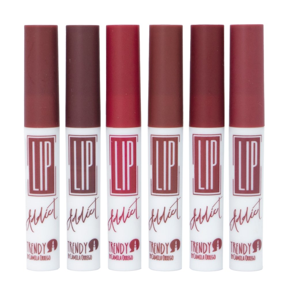 El Kit Labiales Lip Addict Rojos X6 Trendy no debe faltar en tu colección de maquillaje! Trae 6 labiales líquidos, tonalidades rojizas y acabado mate.