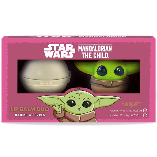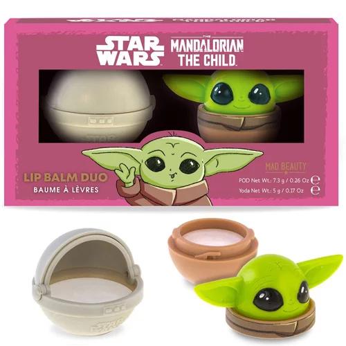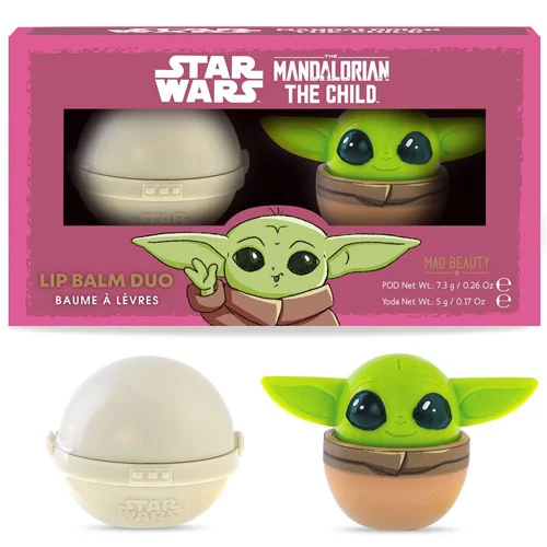 Dúo de bálsamos labiales de Mandalorian con aroma a manzana y a cereza para hidratar tus labios con el aorma que tú prefieras.
