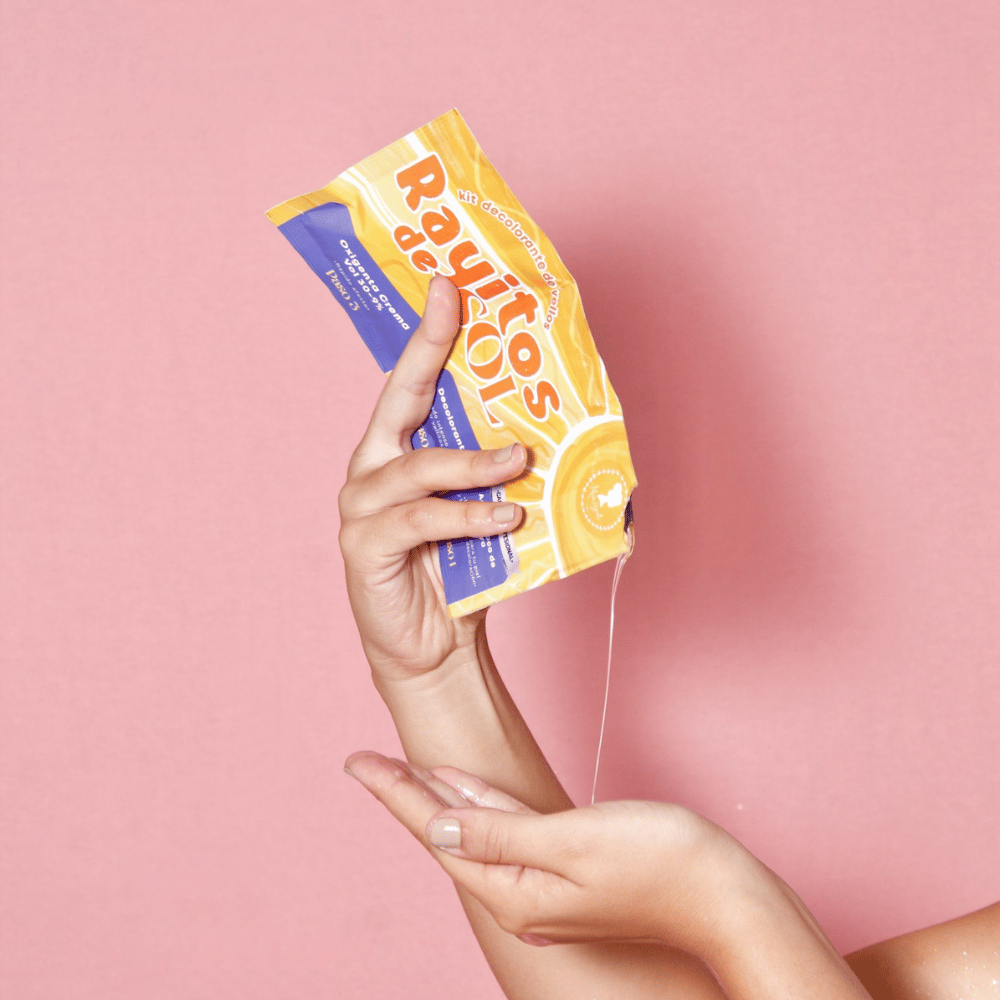 Rayitos De Sol Kit Decolorante De Vellos trae un decolorante en polvo con alto y rápido poder de decoloración para vellos de brazos, piernas, espalda, abdomen y glúteos. ¿Quieres que tus vellos sean más doraditos? Rayitos de Sol deja doraditos tus vellos con 3 simples pasos.