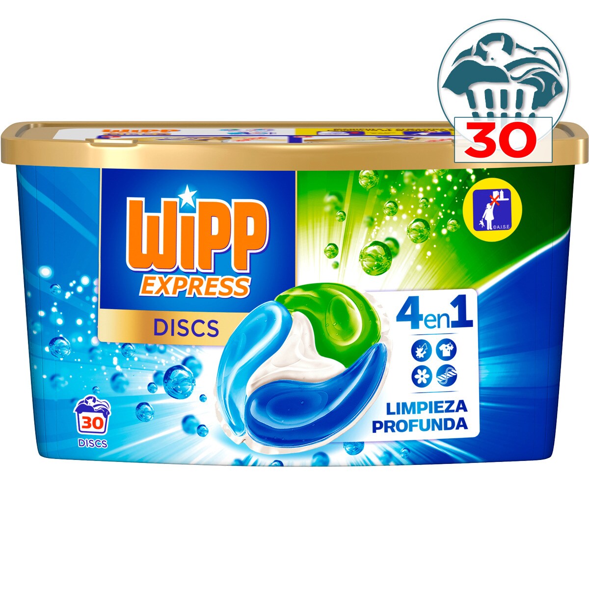 Discs detergente máquina líquido limpieza profunda 4 en 1 de Wipp Express.